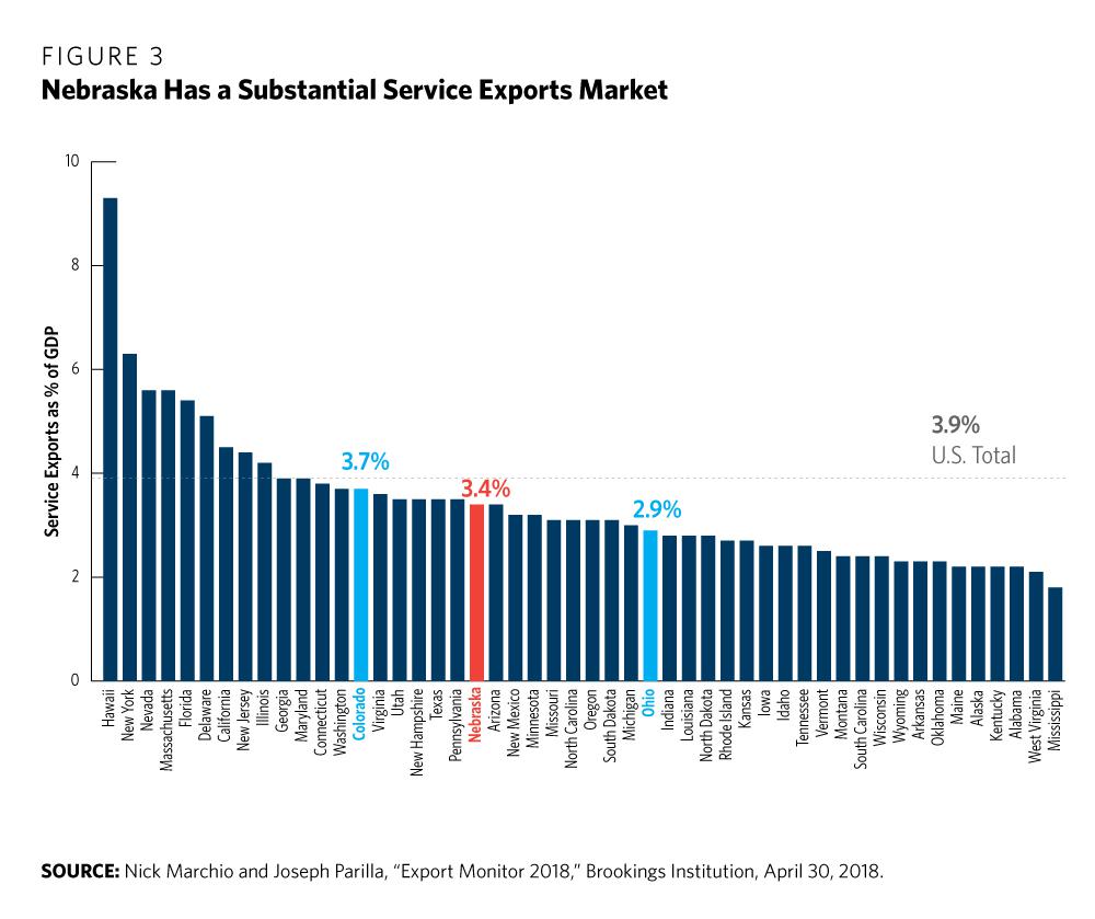 11 Nebraska Department of Economic Development and Nebraska Department of Agriculture, “Nebraska Exports,” using U.S. Census Bureau and U.S. Department of Agriculture’s Foreign Agricultural and Economic Research Services, updated October 10, 2019, https://opportunity.nebraska.gov/research/nebraska-exports/.
