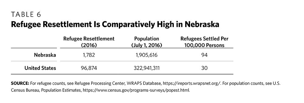 Yet Nebraska is more than just an ag state or a red state. More than half the state’s population now lives in the Lincoln and Omaha metropolitan areas—two areas that have become increasingly cosmopolitan and remain politically diverse.3 In these areas, banking, financial services, insurance, state government, transportation, healthcare, and universities anchor modern, diversified economies.4 And in the last decade, Lincoln and Omaha have boasted some of the highest rates of refugees per capita in the nation.5 In 2008, president Barack Obama picked up one of the state’s five electoral votes by winning the second congressional district, where Omaha is located. Nebraska and Maine are the only two states where it is possible for electoral votes to be split among multiple presidential candidates.6 And Nebraska is the only state with a unicameral, nonpartisan state legislature.7 It is indeed a unique state, yet at the same time, its population growth, levels of postsecondary education, and percentage of workforce in manufacturing all approximate the national average (see Table 1).